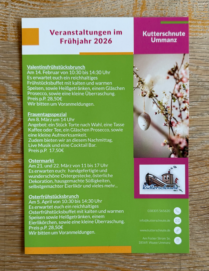 Neben dem alltäglichen Geschäft können Sie die Kutterschnute auch für Familienfeiern- oder andere Feste buchen. In besonderem Ambiente wird Ihre private Veranstaltung zu etwas ganz besonderem.